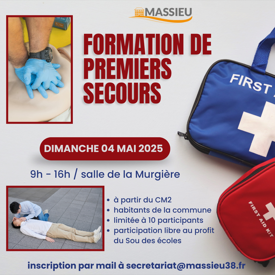 Un habitant de la commune propose une initiation gratuite aux gestes de premiers secours le dimanche 4 mai, de 9h à 16h, à la salle de la Murgière.