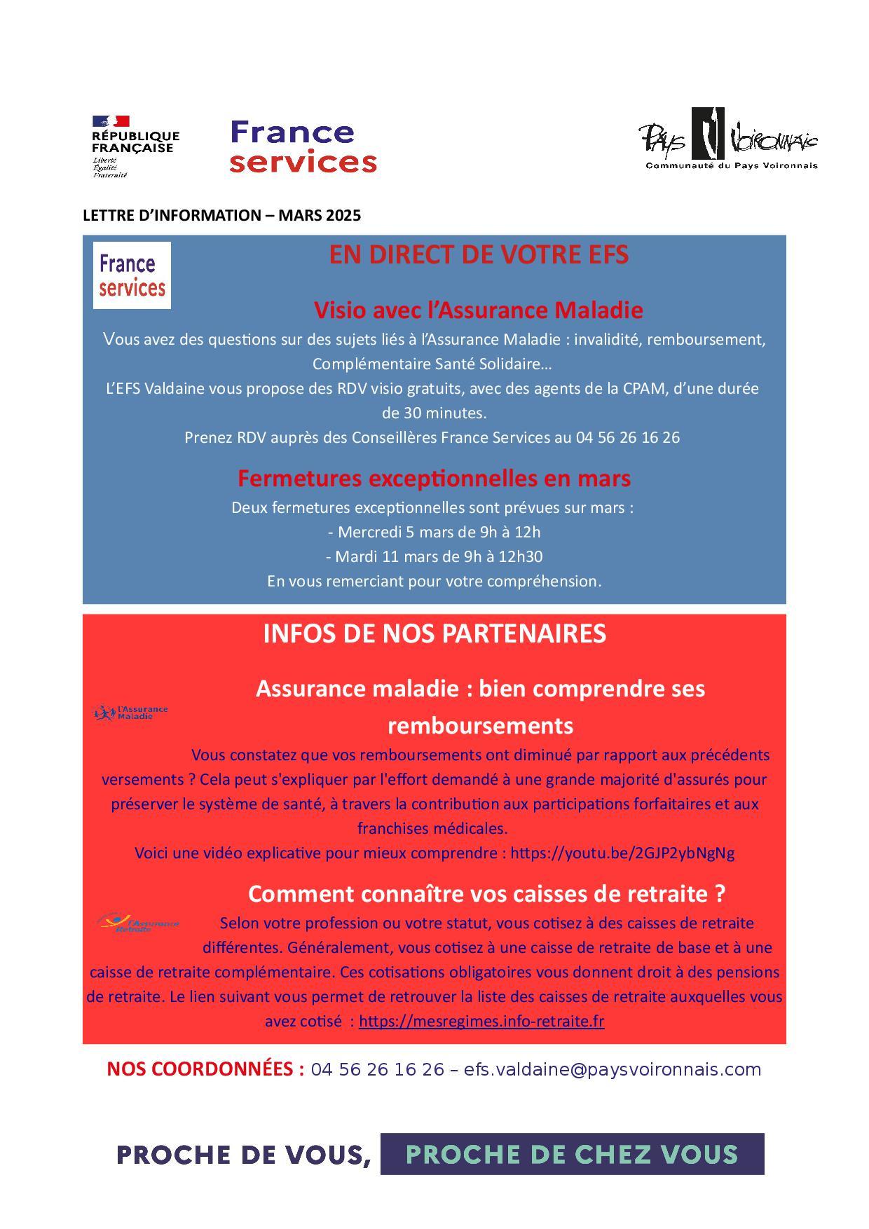 Découvrez la lettre d'information de l'Espace France Services Valdaine du mois de mars 2025.