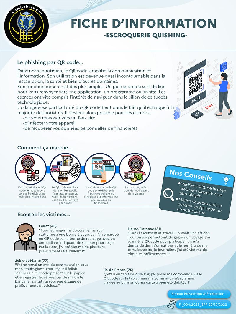 "Dans l’ascenseur au travail, il y avait une affiche pour un jeu permettant de gagner un voyage. J’ai scanné le QR code pour participer, on m’a demandé des informations et le numéro de ma carte bancaire, le jour même j’ai été victime de plusieurs prélèvements !"