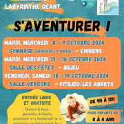 L'un des plus grand événement de l'année arrive ! "S'aventurer" 2024 : un grand parcours de motricité géant, des labyrinthes géants, parcours moteurs pour bébés, moyens et plus grands, dans une grande salle avec pleins de matériels.