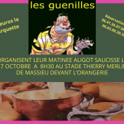 Le rugby club de Massieu organise sa matinée aligot / saucisse le dimanche 26 novembre 2023 à partir de 9 h au stade Thierry Merlin de Massieu devant l'Orangerie.