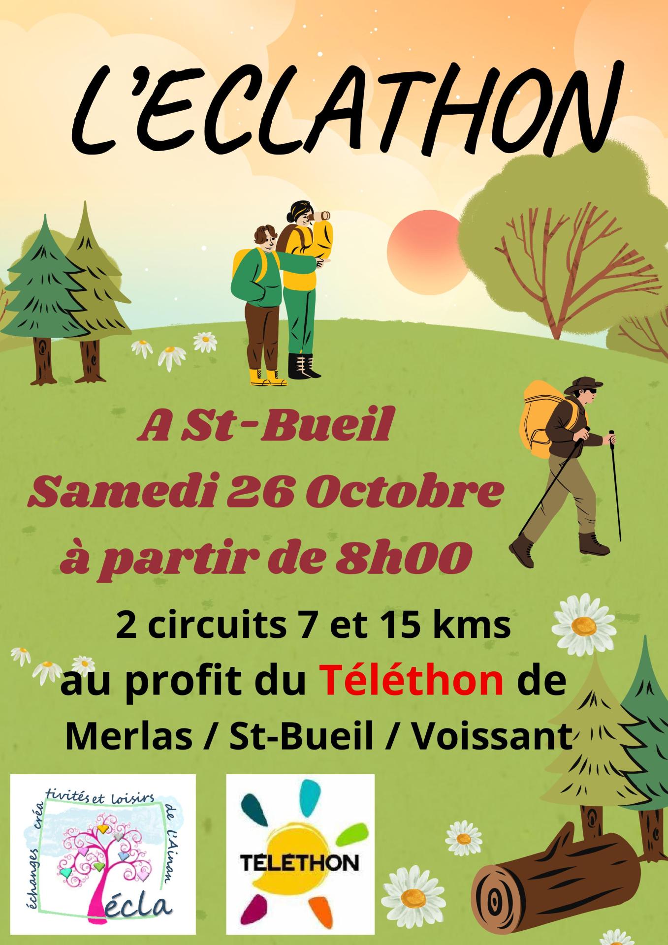 L'association ECLA en collaboration avec la coordination du téléthon des 3 communes de Merlas, St-Bueil et Voissant organise sa traditionnelle randonnée L'ECLATHON le samedi 26 octobre au départ de St-Bueil.