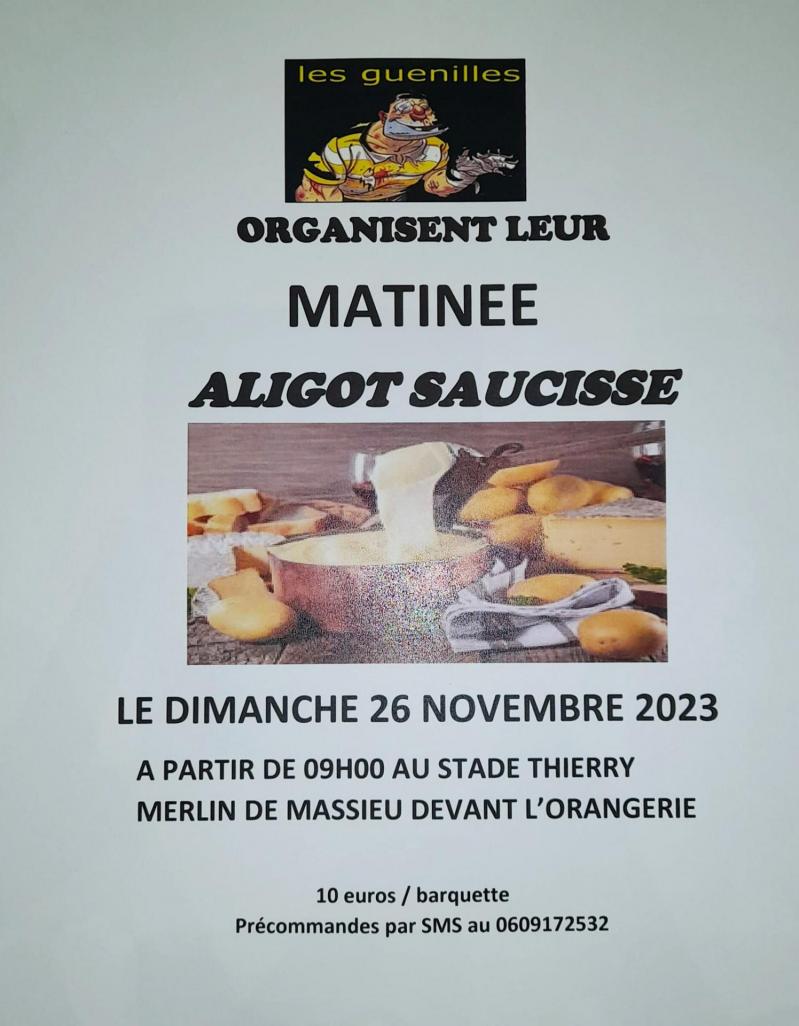 Le rugby club de Massieu organise sa matinée aligot / saucisse le dimanche 26 novembre 2023 à partir de 9 h au stade Thierry Merlin de Massieu devant l'Orangerie.