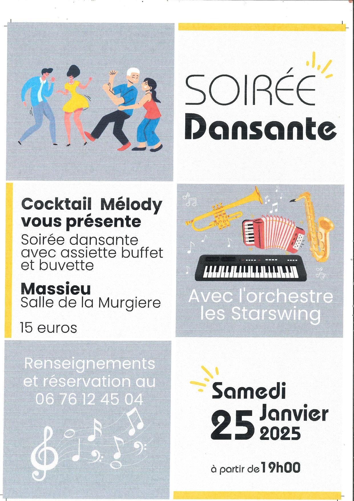 L'association Cocktail Melody vous propose une soirée dansante avec l'orchestre les Starswing le samedi 25 janvier à partir de 19h.