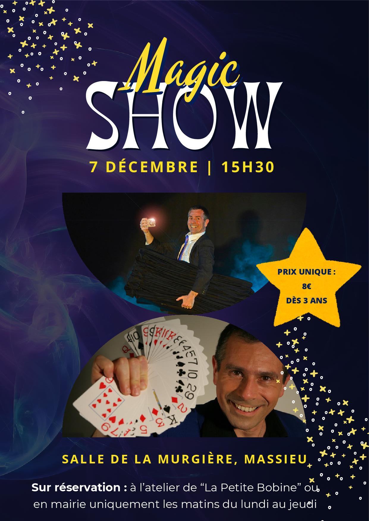 La commission proximité de la commune de Massieu accueillera le magic show du magicien Jean-Philippe LOUPI le samedi 7 décembre 2024 à 15h30.